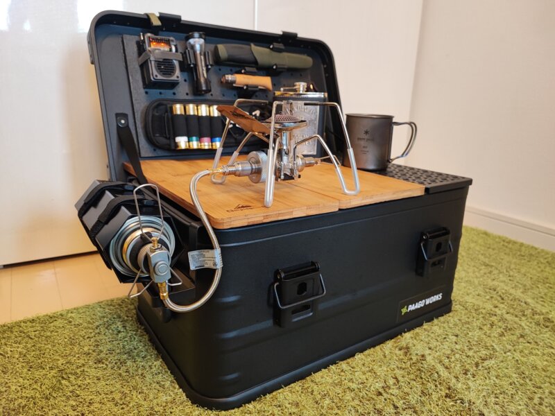 新しく買ったキャンプギアBOXをキャンプに欠かせない道具箱にしてみたアルミコンテナカスタム。