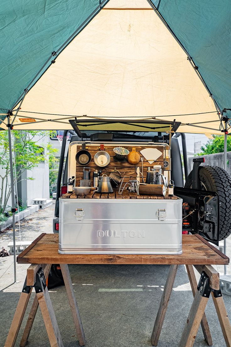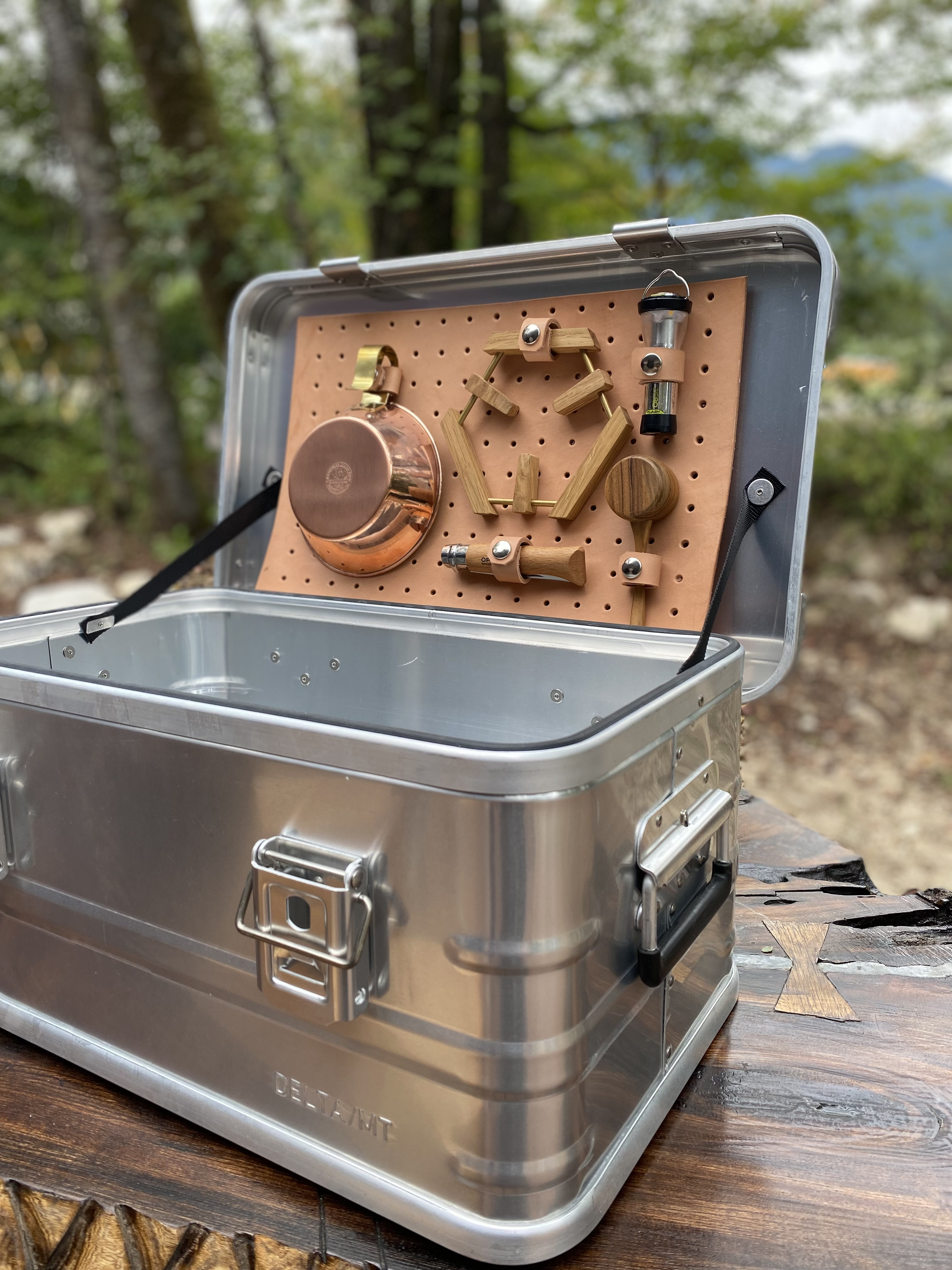 Let's the box camp!ダルトンアルミコンテナアルミコンテナアルミコンテナカスタムダルトンdulton有孔ボードパンチングボードpegbordペグボードパンチングストレージ99highground杜のテラス。