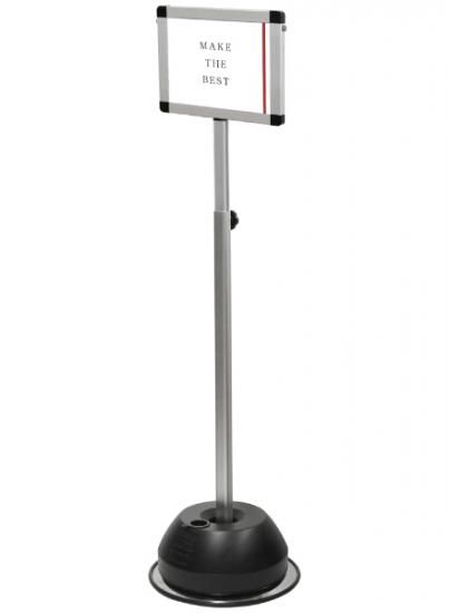 屋外ポールサインスタンド A4片面横シルバー 雨に強いアルミ製で転倒防止用ウエイトがついた屋外対応のポールスタンド直送品。
