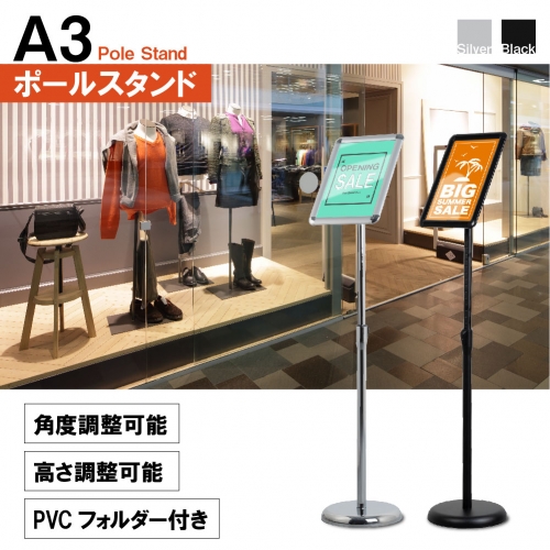 看板 ポールサイン A3 1本ポール 伸縮式ポール ポールサインスタンド 組み立てフロアーサイン 店舗用看板 立て看板 屋内スタンド看板A3 -メルカリ。