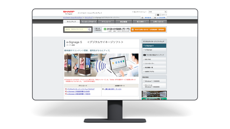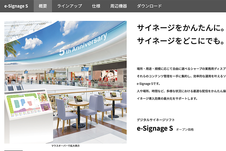 表組みデジタルサイネージ・ソフトウェア e-Signageプラスデジタルサイネージ:シャープマーケティングジャパン。