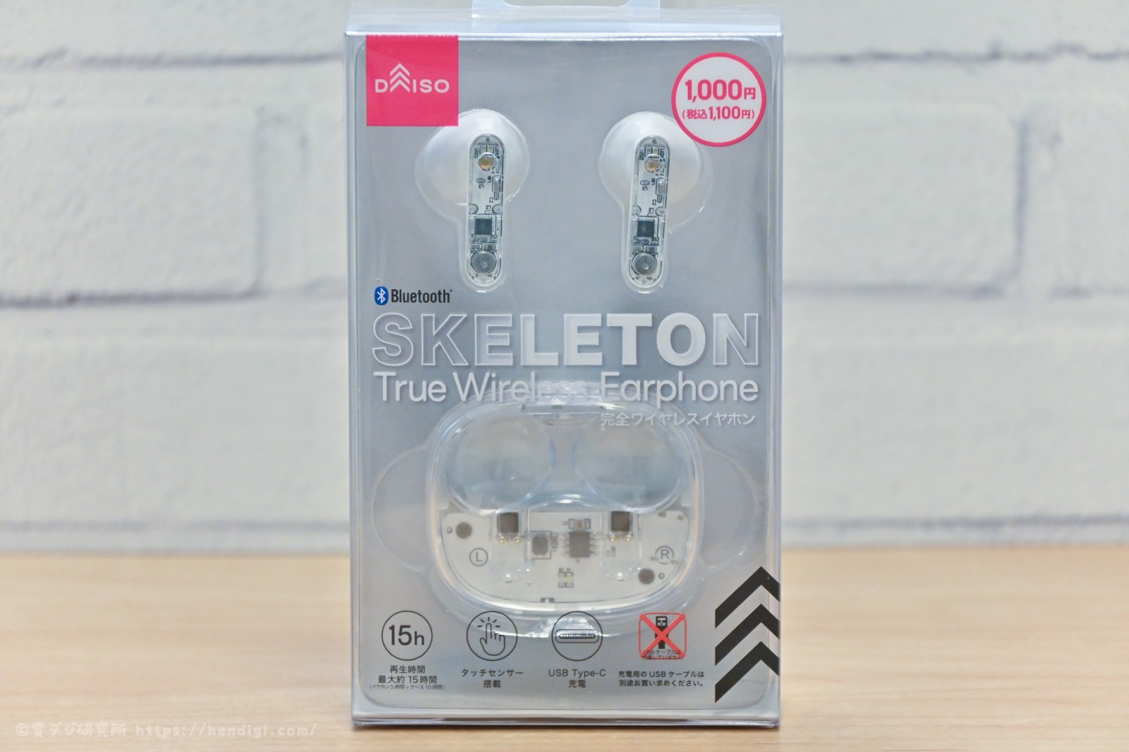 ダイソーからスケルトンのワイヤレスイヤホンが登場!インナーイヤー型で軽い装着感がポイント🎶変デジ研究所。
