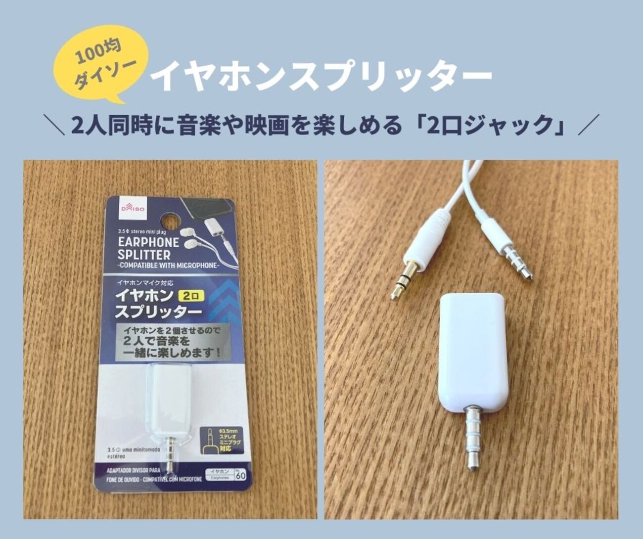 100均ダイソー 2人同時に音楽や映画を楽しめる!イヤホン分配ジャック - 我が家は建売3人家族。