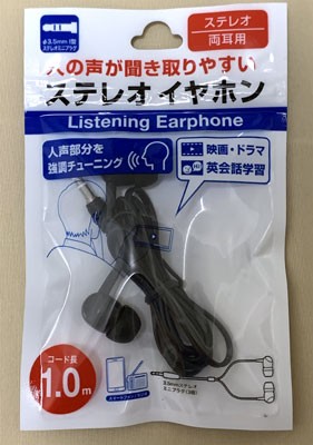 100均イヤホン 「人の声が聞き取りやすいステレオイヤホン」AT-ES11 110円 : ある日突然。