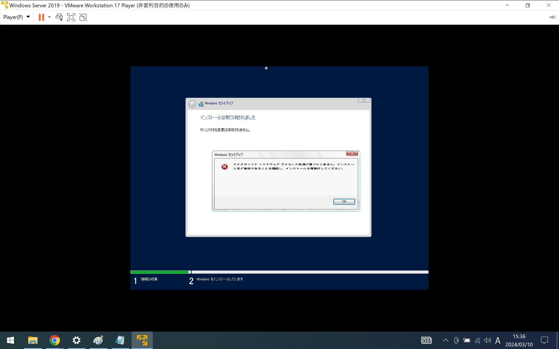 Windows Server 2019 ライセンス条項が見つかりません。エラー対処 - Qiita。