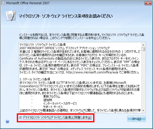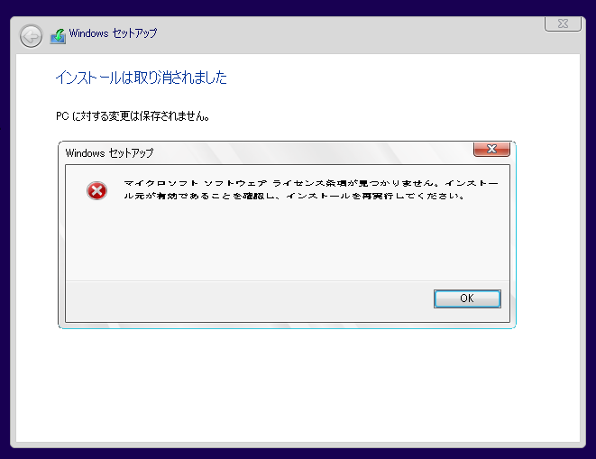 ソフトウェアライセンス条項が見つかりません。インストール元が有効であることを確認し、インストールを再実行してください。Windows 実践ガイド。