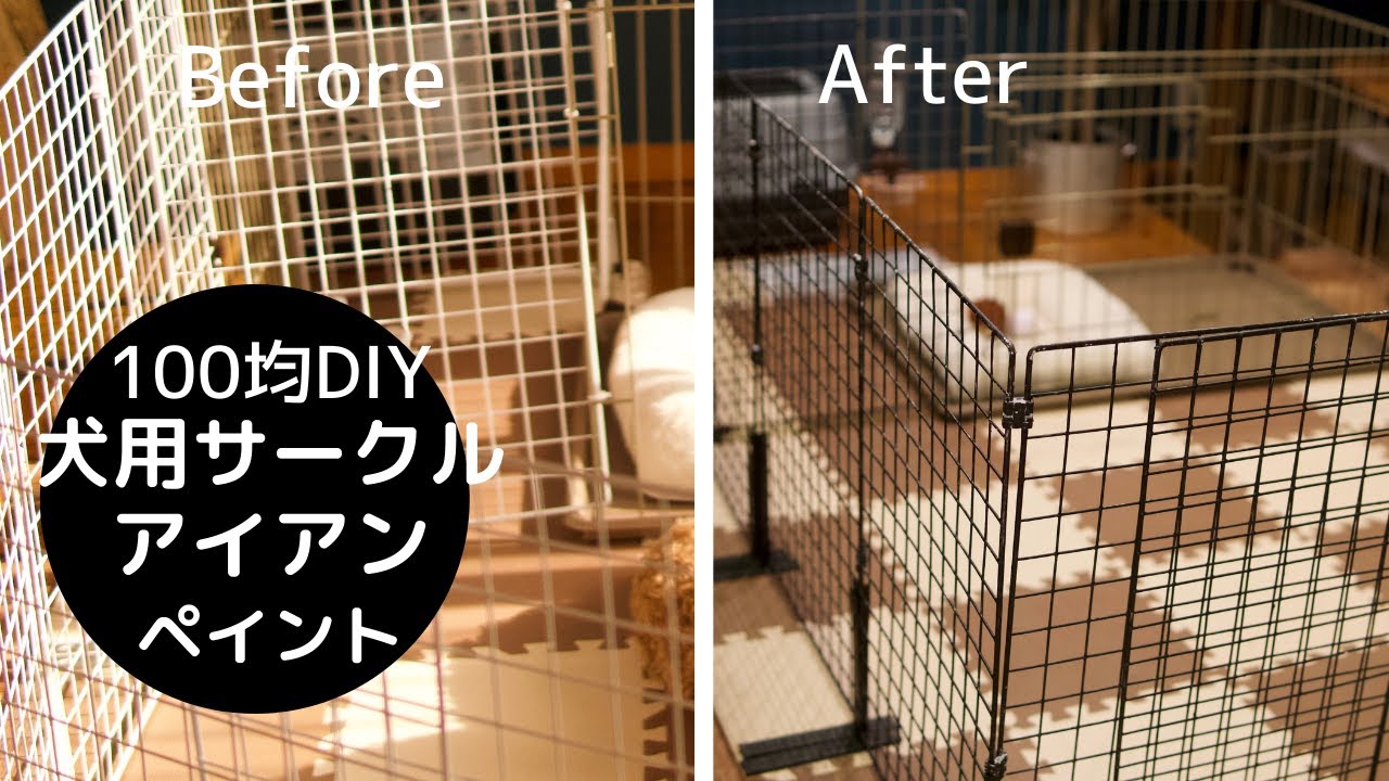 100均DIY DAISOワイヤーネットで作った犬用サークルをアイアンペイントでリメイク オシャレサークル。