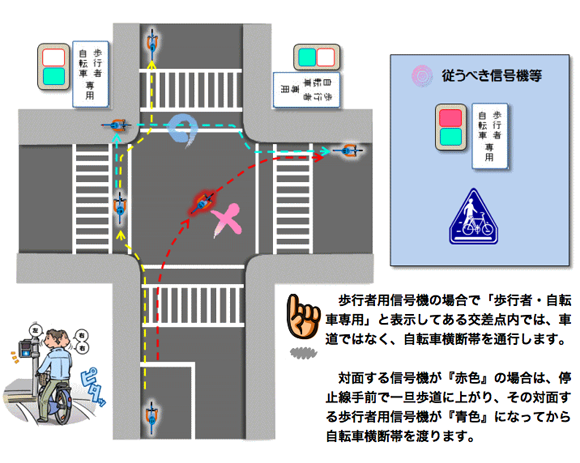 スクランブル交差点での自転車の通行方法 - 松本市ホームページ。