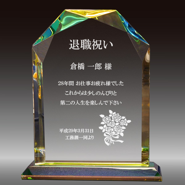 退職記念・定年祝いのデザイン&メッセージガラスアートギフト アトリエピジョン。