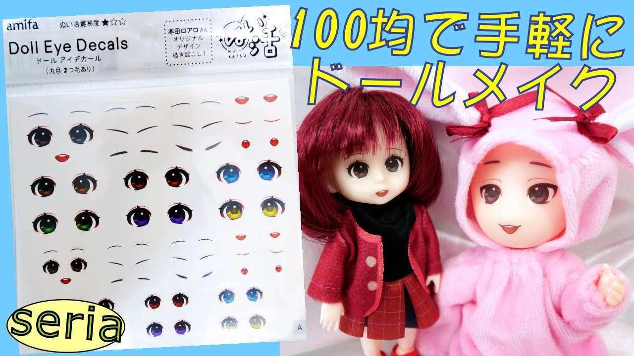 セリアドールアイデカールカスタムドールシールパーツamifa。