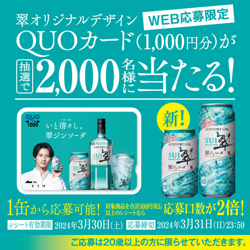 飲料・食品、プレゼント、にぎやか・ポップ、人物写真、切り抜き、キャンペーンのバナー翠オリジナルデザインの QUOカード 1,000円分 が抽選で2,000名様に当たるBANNER LIBRARY。