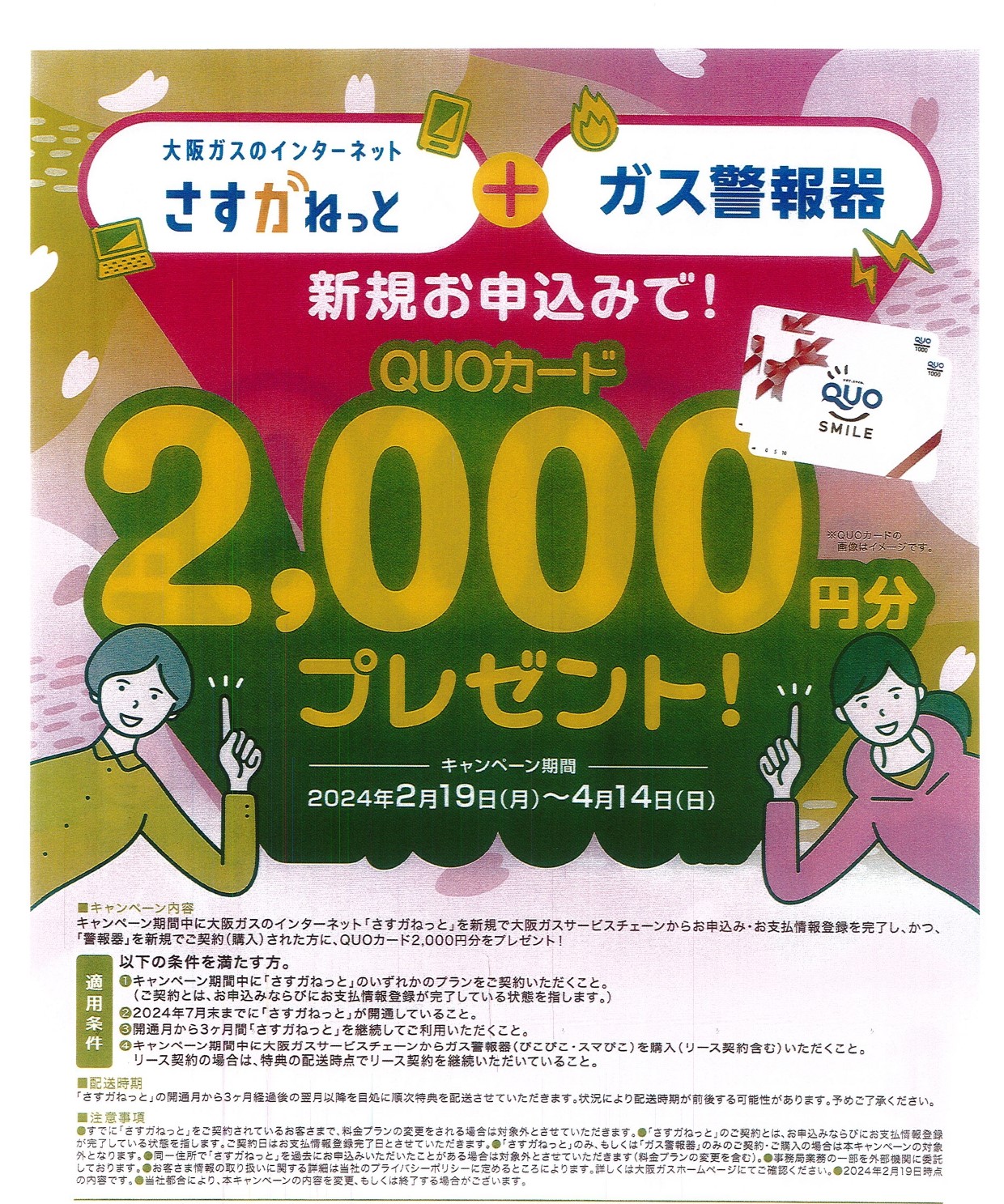 早く決めるとお得、特典のクオカードを貰っちゃおう。
