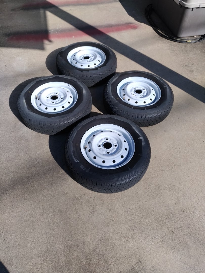決まりました 軽バン用鉄チンホイール・タイヤ付・業者による塗装済・バン。