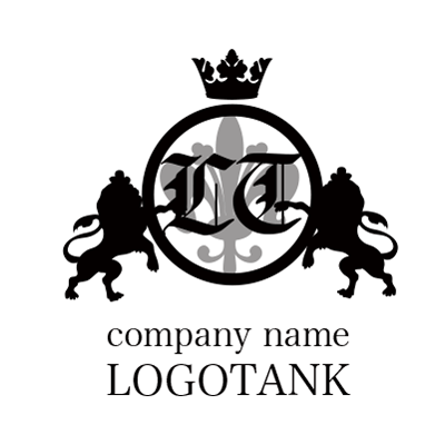 ライオン2匹に守られたエンブレムロゴ ロゴタンク 企業・店舗ロゴ・シンボルマーク格安作成販売。