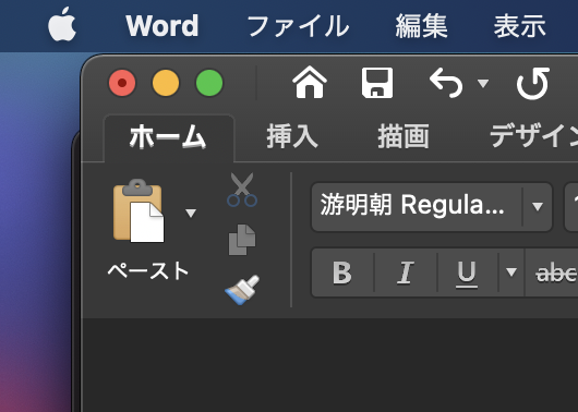 Word for Mac ダークモードを解除して元の白画面に戻す方法。