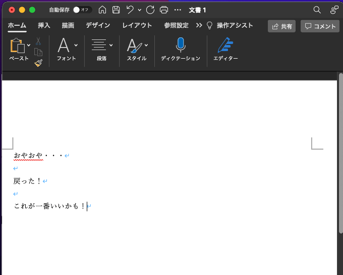 Mac版『Word』をダークモードからノーマル ライトモード に戻す方法近頃のトギー・ハイブリッド。