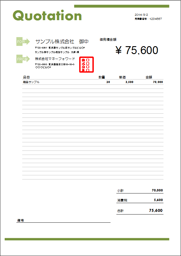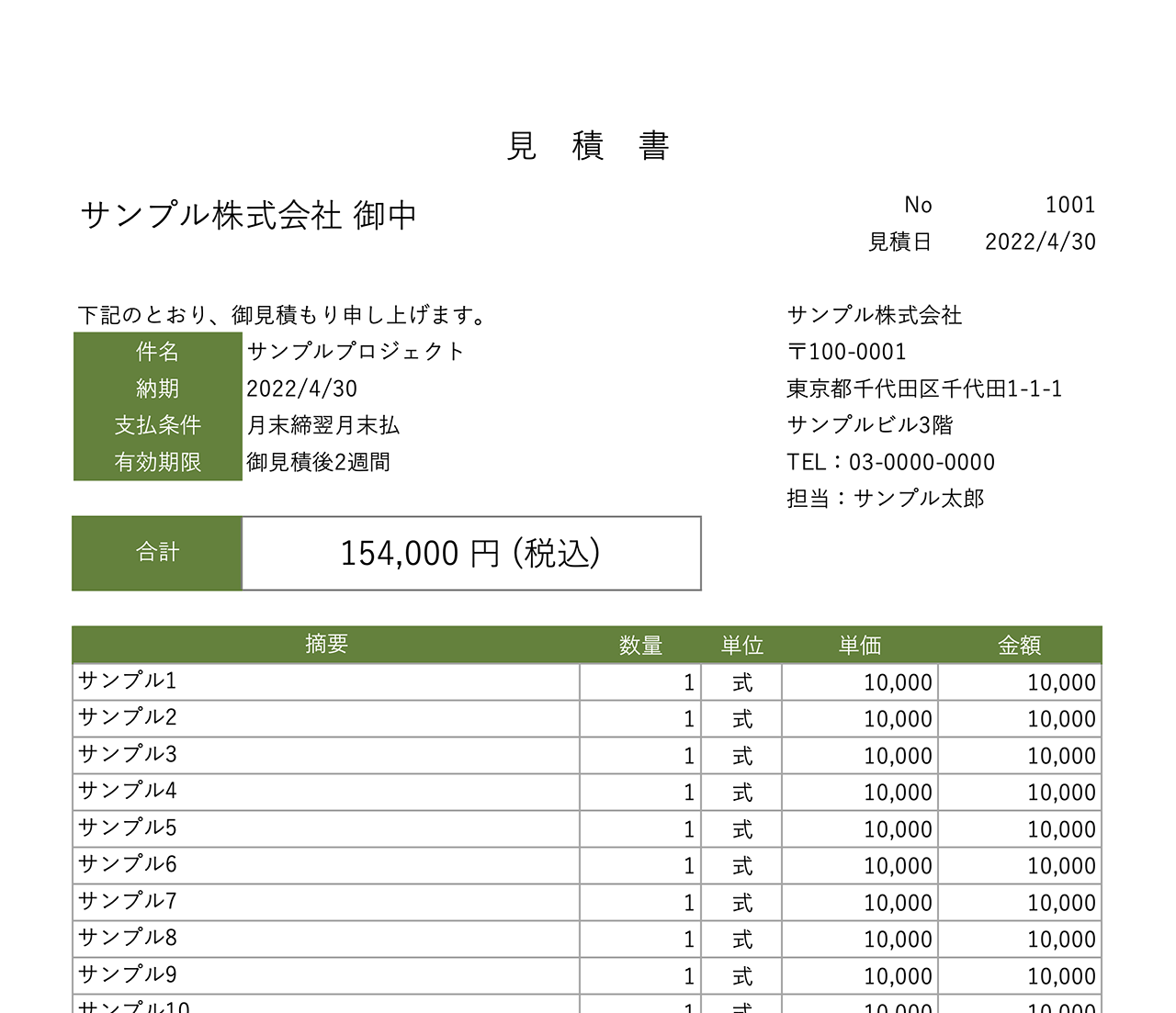 見積書 – エクセルテンプレート フォーマット集MakeLeaps。