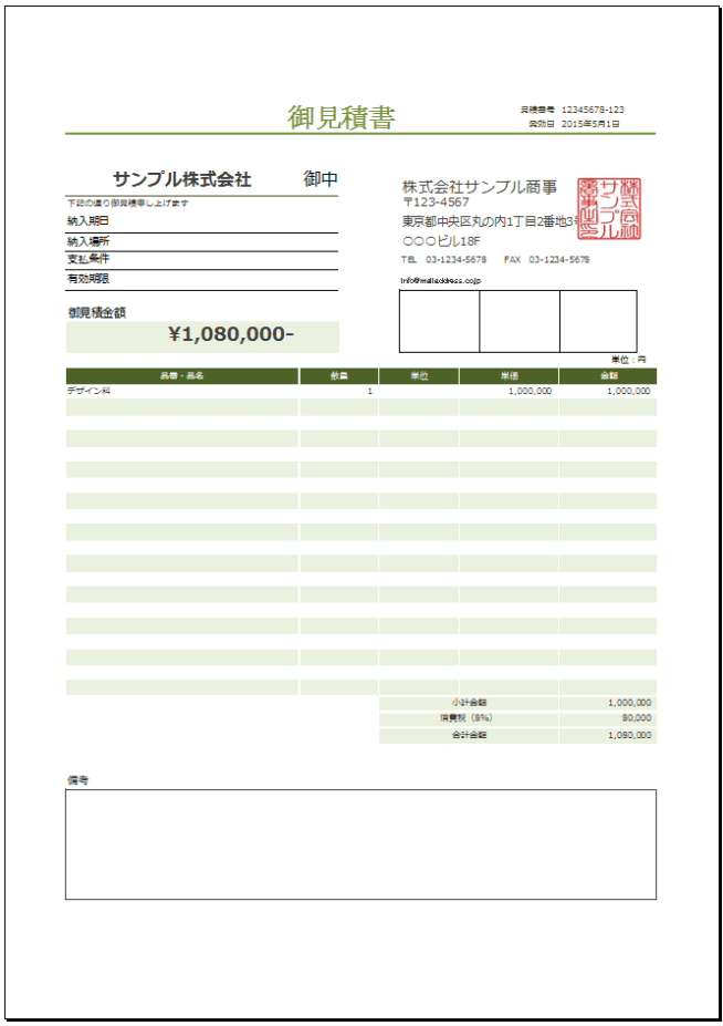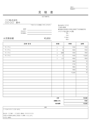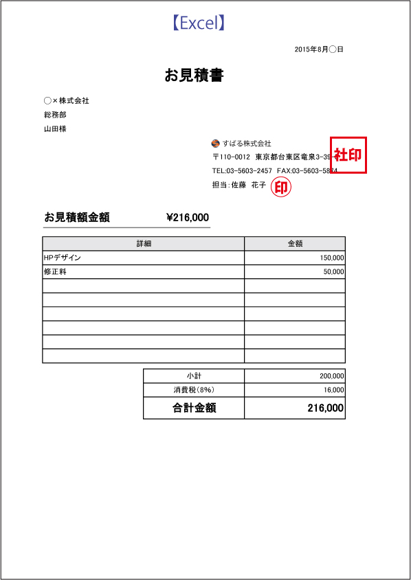 見積書エクセルテンプレート・サンプル 無料 ・作成・書き方。