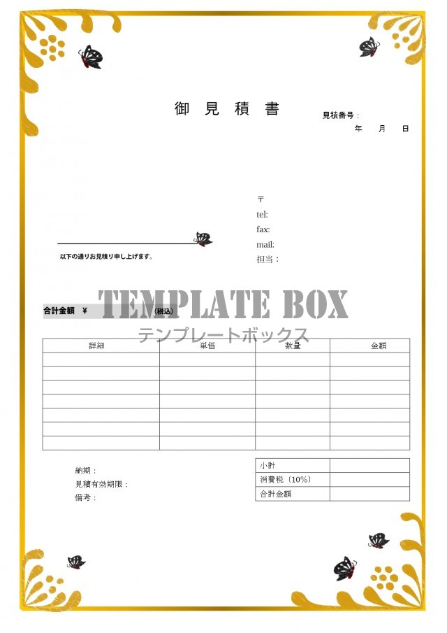 かわいい&おしゃれな見積書が簡単に作成できるテンプレート!素材をダウンロードイラストボックス「プレミアム」テンプレート。