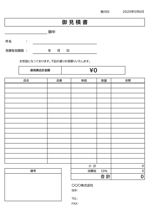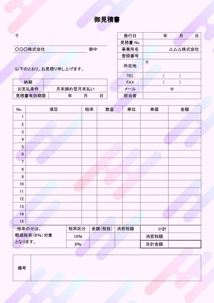 見積書 テンプレート 無料DL Excel・Word対応書き方・例文・工事・軽減税率対応まで解説Bizroute。