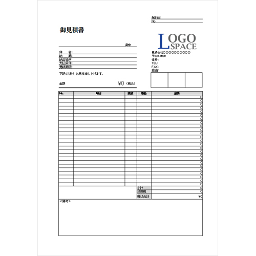 基本レイアウト - 見積書エクセルテンプレート・サンプル 無料。