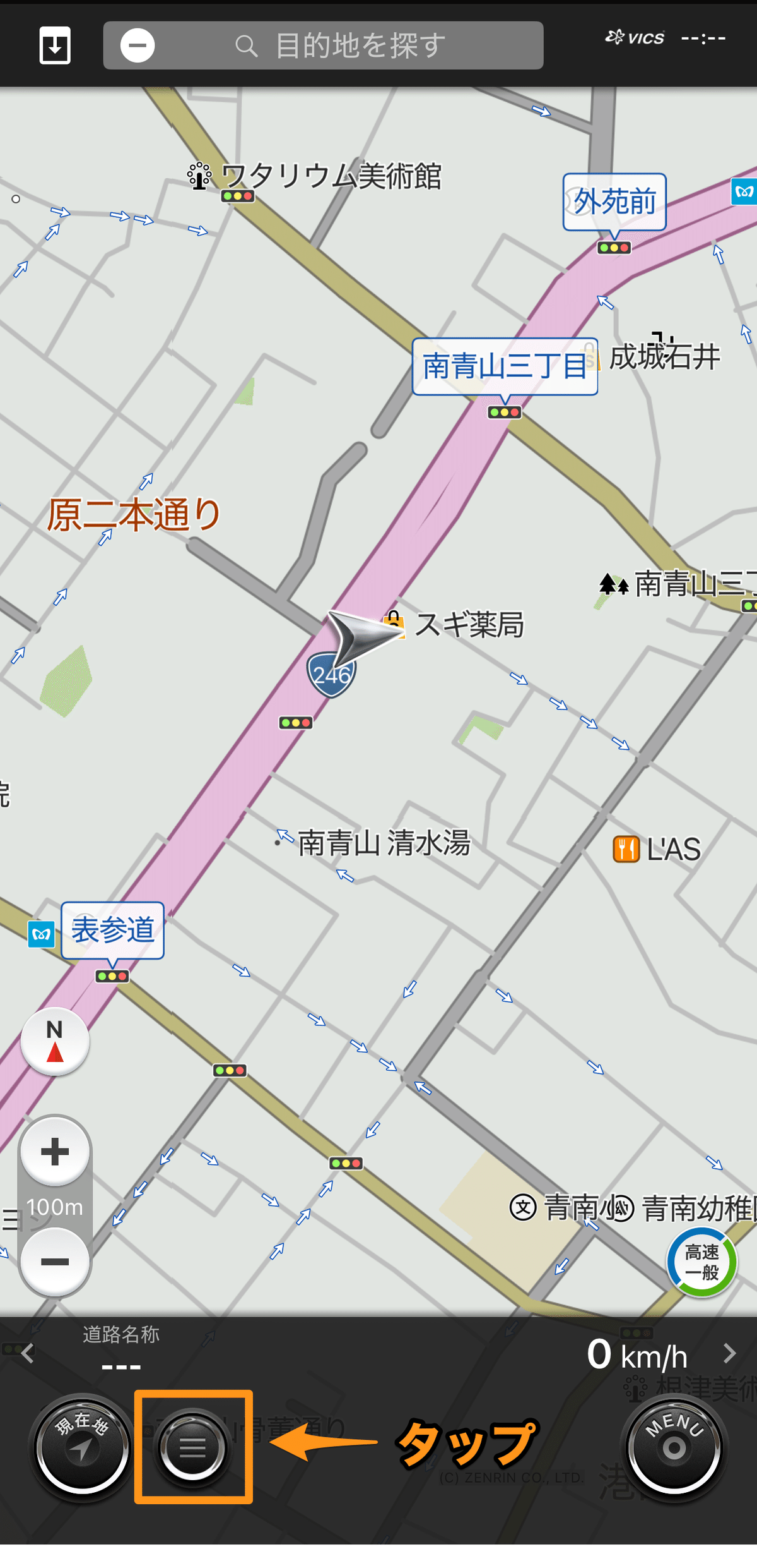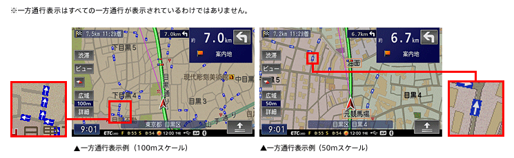 100 mスケールで一方通行マークを表示する地図画面の操作ナビゲーションAVIC-RQ902 RL902 RW902 RZ902 RL802-D RW802-D RZ802-D RZ702 RW502 RZ502 RW302 RZ302 RZ102用ユーザーズガイド パイオニア株式会社。