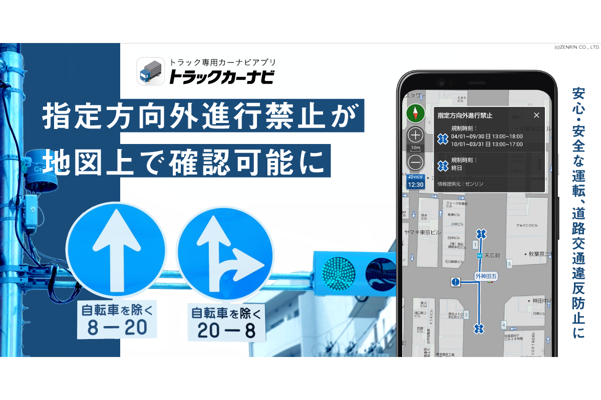 トラックカーナビ』、指定方向外進行禁止の情報を地図上で確認可能にプレスリリース おしらせナビタイムジャパン。