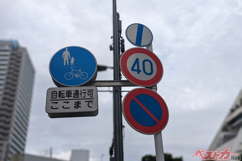 あれ 何だっけ?」 街で見かける「謎の標識」どんな意味!? うっかり忘れがちな「青いスラッシュ」の正体とはくるまのニュース。