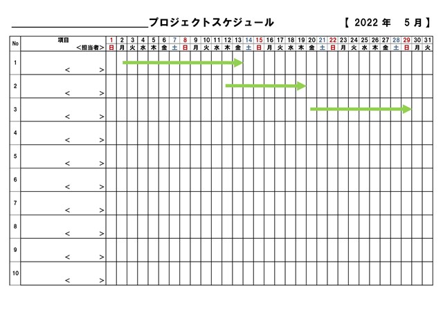 プロジェクトスケジュール表テンプレート04「日付・曜日自動入力」 エクセル・Excel 無料ダウンロードテンプレートNAVI。