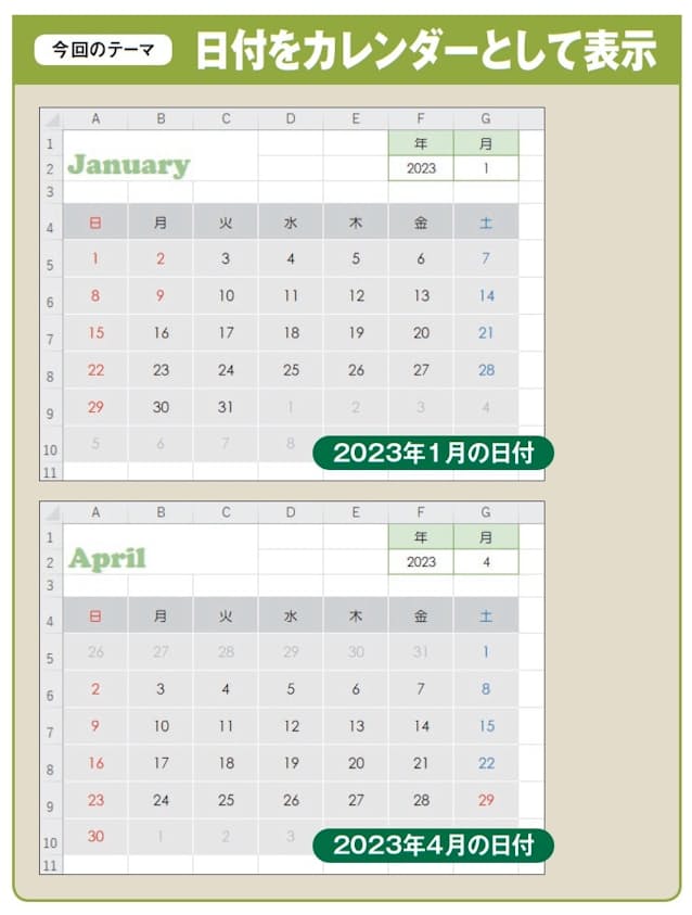 Excelで「万年カレンダー」、年月指定で日を自動表示NIKKEIリスキリング。