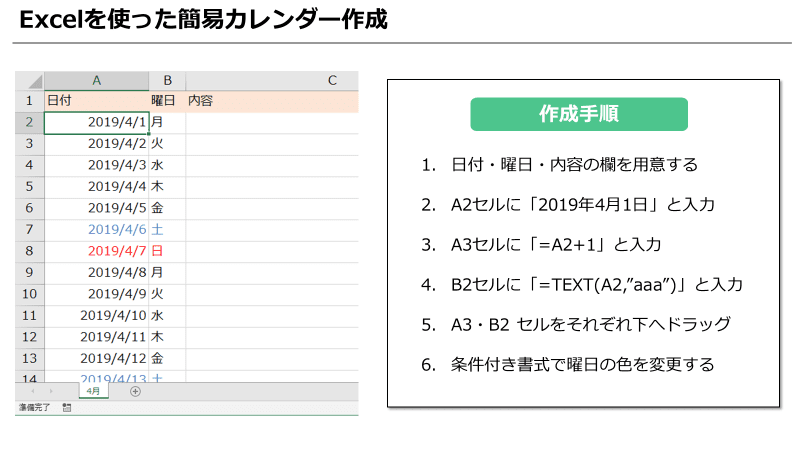 Excel関数でシフト表の曜日祝日つきカレンダーを瞬時に作成する - エク短Extan.jp。