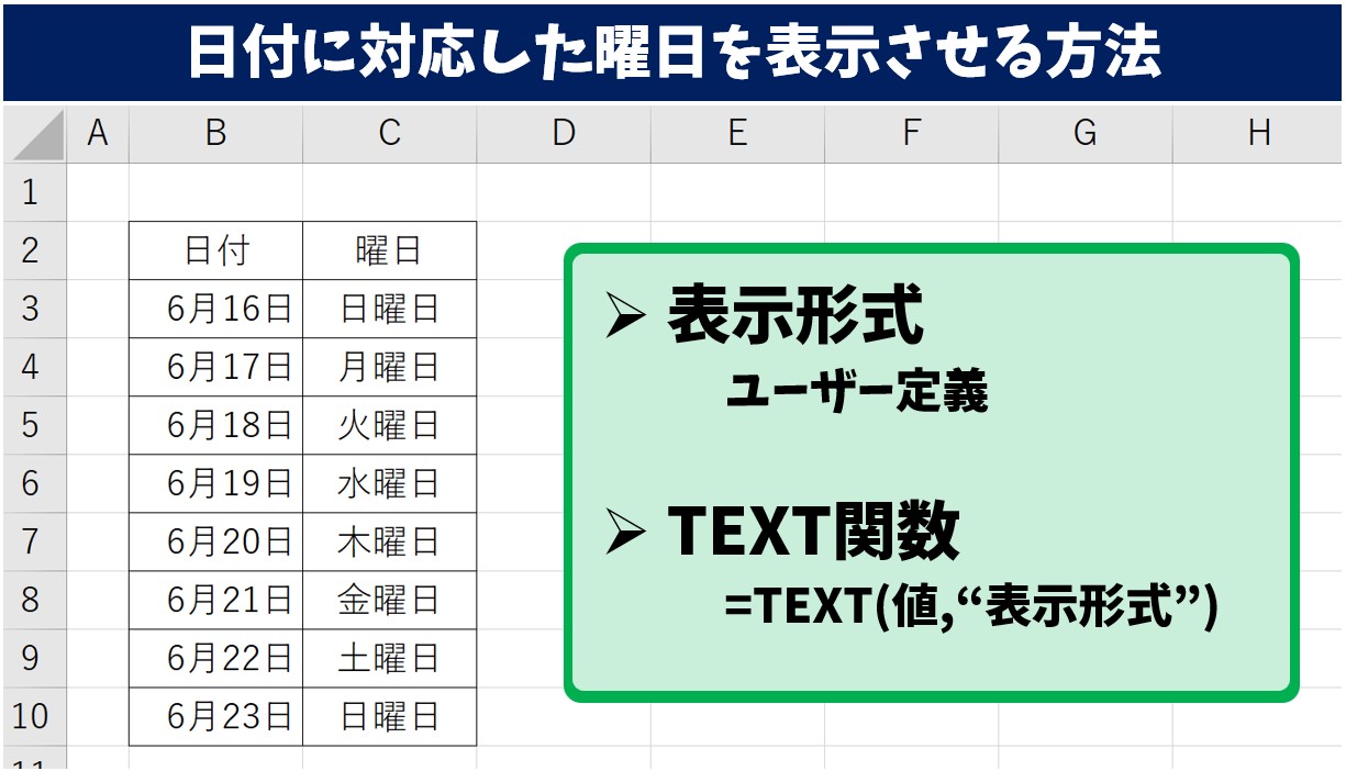 エクセル Excel で曜日を自動表示するには?関数を解説 – ルートテックビジネスライフとキャリアを応援する情報メディア。