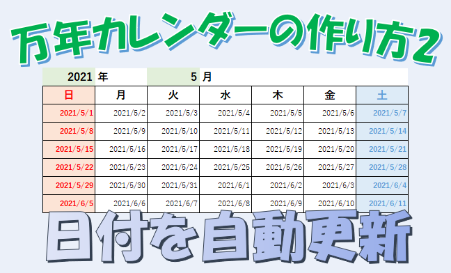 エクセル 日付を自動更新できる関数1秒で毎月更新できるカレンダーの作り方も紹介。