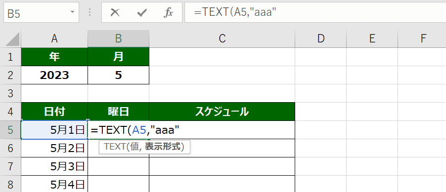 Excel関数で日付の隣のセルに曜日を自動表示する方法できるネット。