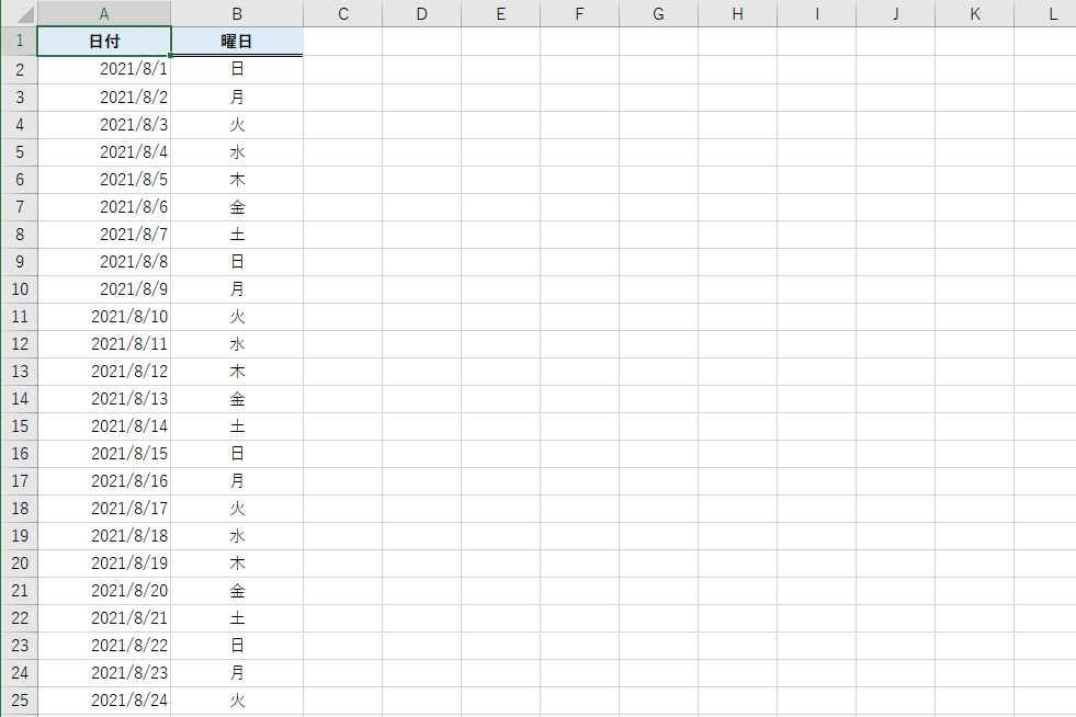 Excelで日付と曜日を自動入力する方法 1ヶ月分。