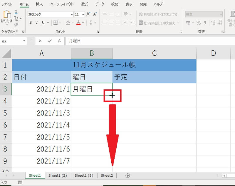 Excel・エクセル 日付は自動入力!スケジュール表の作り方もりのくまのサクサクOffice。