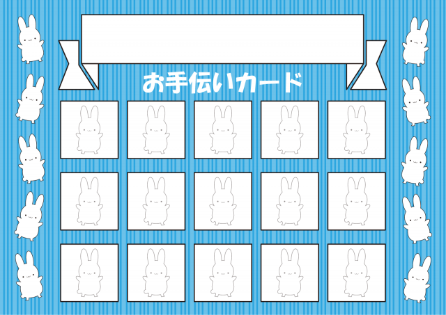49お手伝いカード ウサギ・水色地無料イラスト素材素材ラボ。