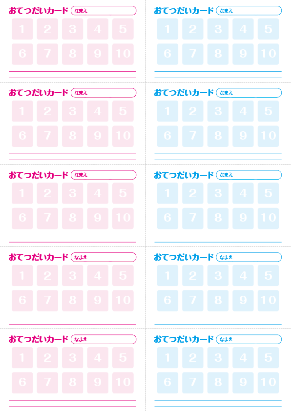 お手伝いカードの無料テンプレート2つ折り8種類のダウンロード - テンプレートの無料ダウンロード。