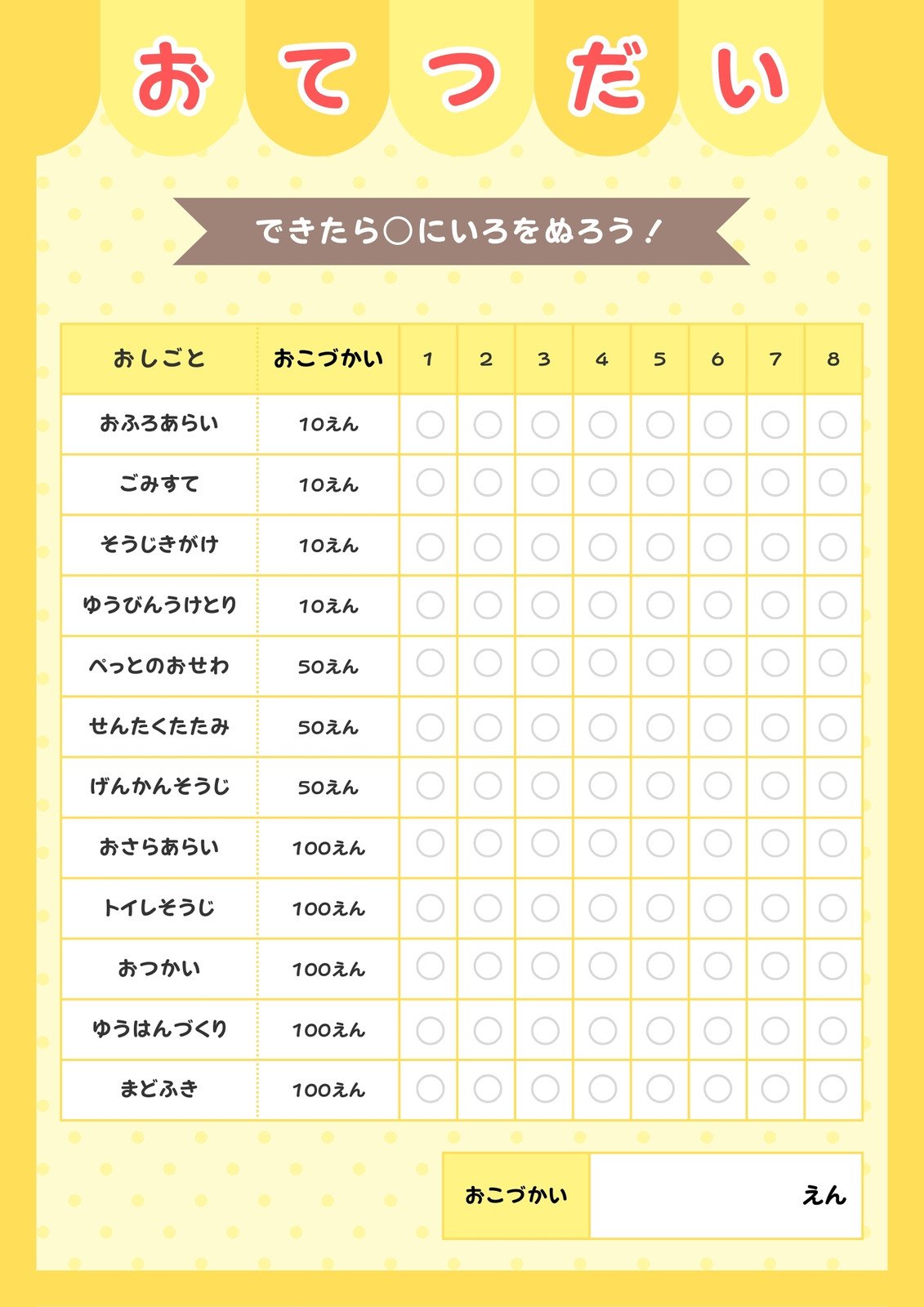 無料ダウンロード可』子どもが進んでお手伝い!我が家のお手伝いポイント表とポイントカードくらしのカタチ。
