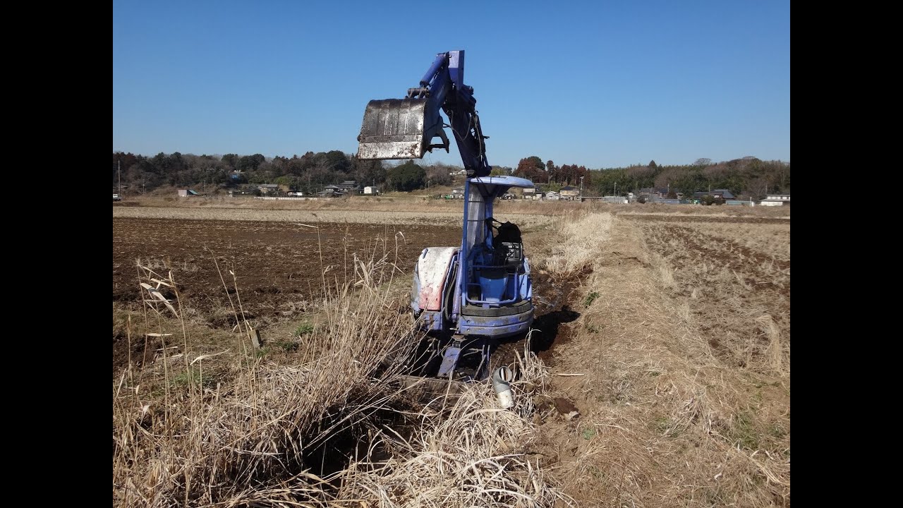 バックホウ ユンボ でU字溝のおそうじ ペリカンの口で機械化たてしな林産~薪販売~。