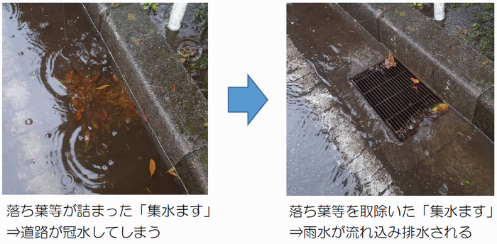 道路の「集水ます」や「側溝」の清掃にご協力ください船橋市公式ホームページ。