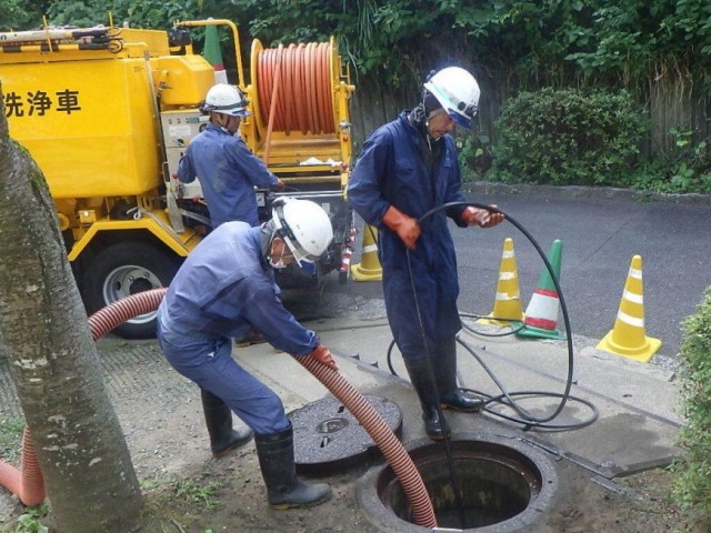 側溝清掃、路面清掃、グリストラップ清掃日本サービス株式会社。
