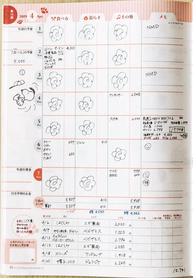 hana家式オリジナル家計簿フォーマットの書き方ミニマルな暮らしと貯蓄0円からの節約家計簿。