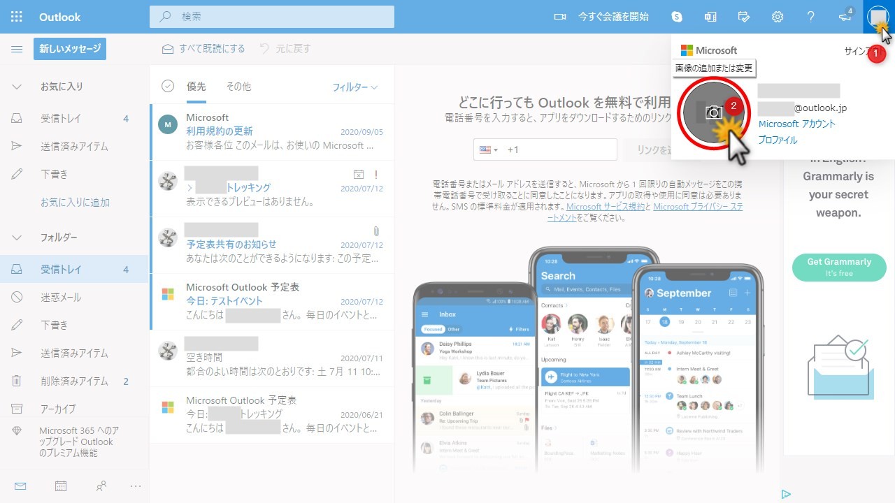 Outlook.comでプロフィール・アイコン画像を設定する方法。