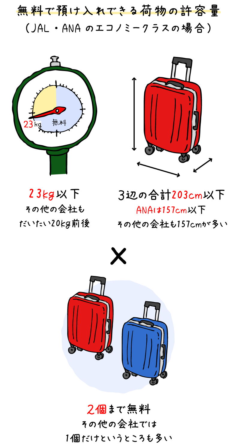 日本発国際線エコノミークラス 預け入れ荷物はいくらまで無料?TABIZINE~人生に旅心を~。