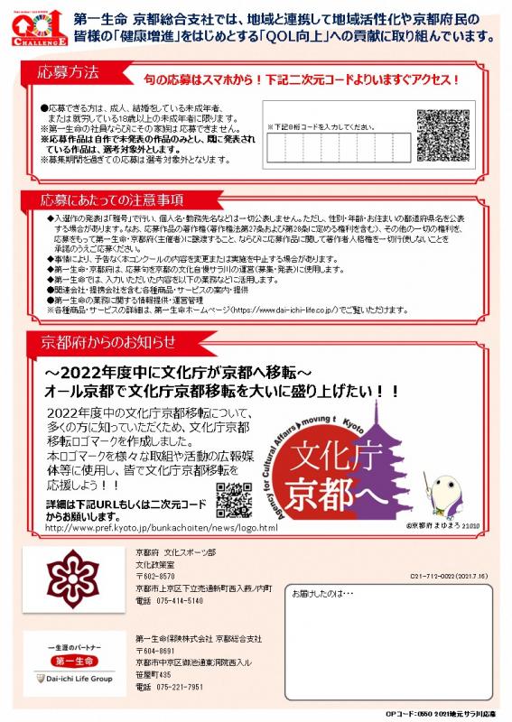 京都の文化自慢サラ川2021 大募集<募集期間は終了しました> 京都府ホームページ。