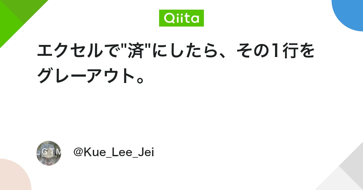 エクセルで"済"にしたら、その1行をグレーアウト。Excel - Qiita。