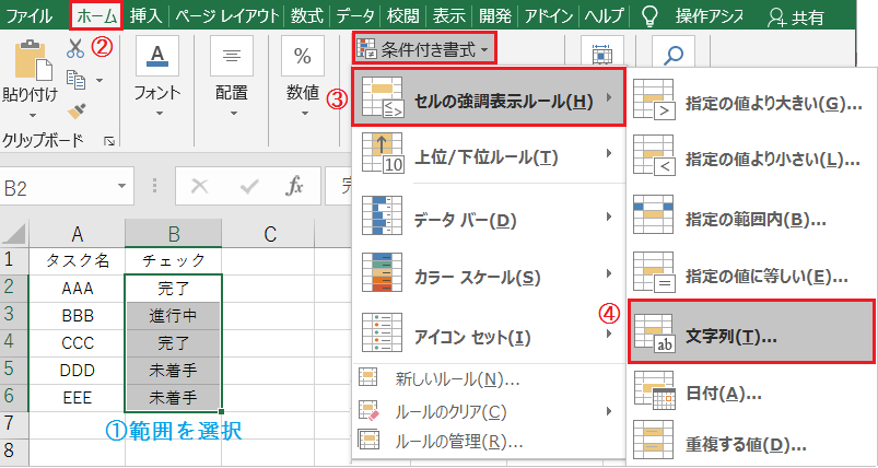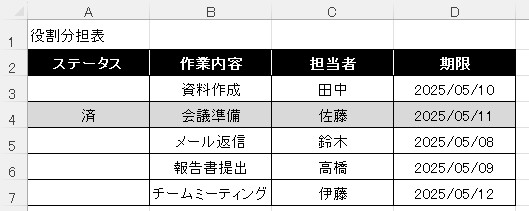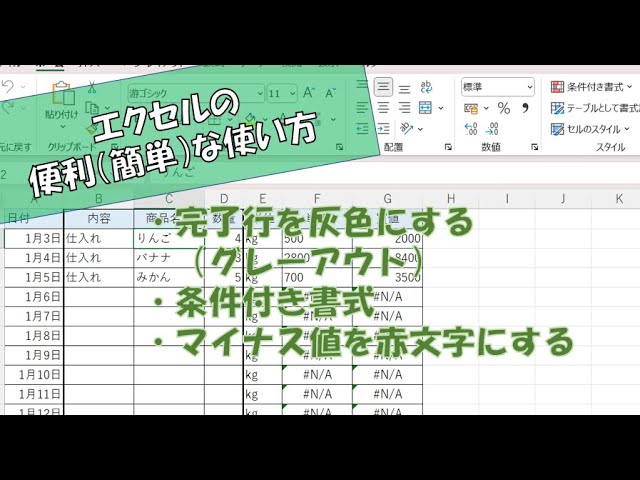Excel エクセルで済や完了で色付け グレーアウト:行全体や列全体に自動で色変更 する方法モアイライフ more E life。