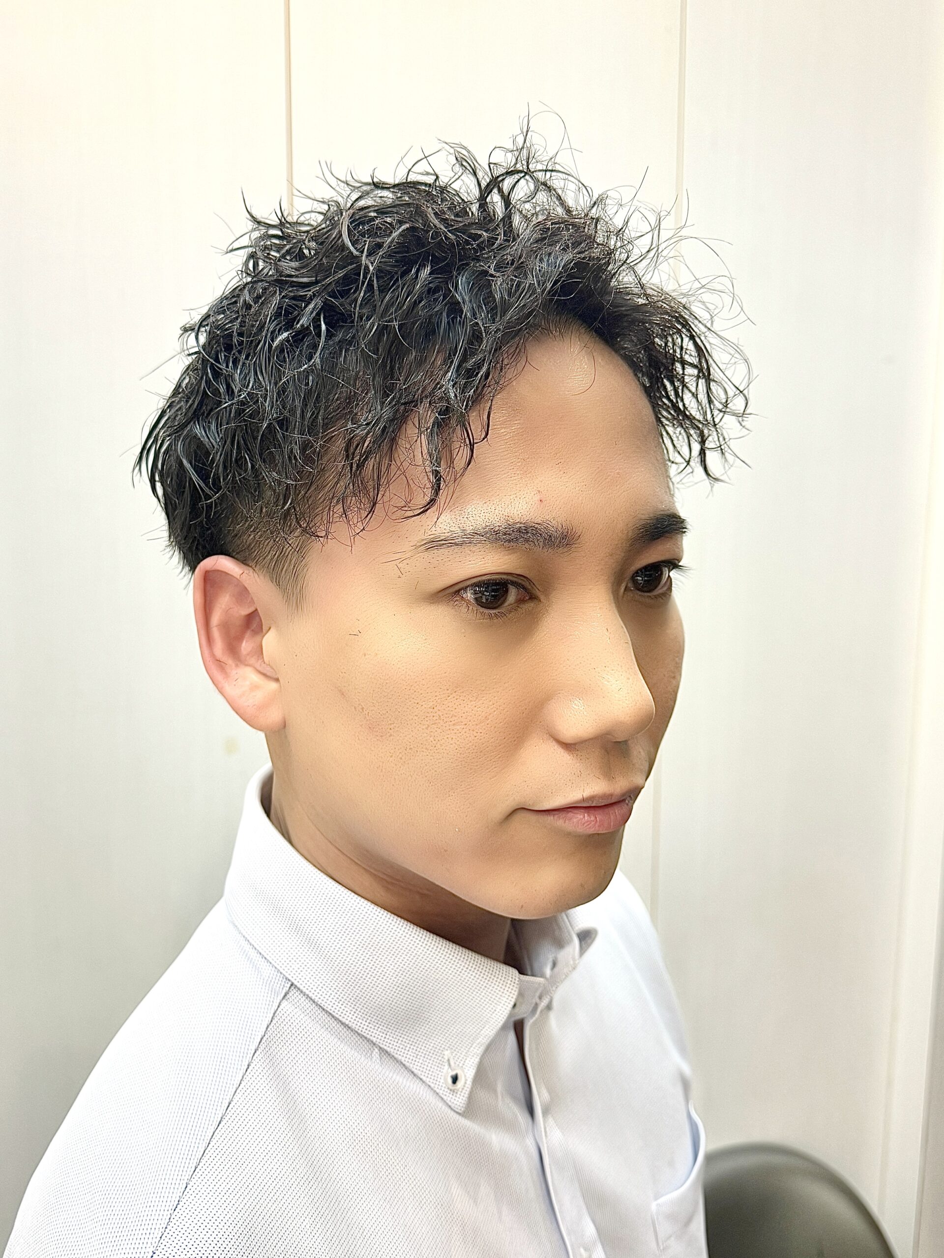 20・30代ビジネススタイル パーマオールバックスタイルヘアスタイル人形町、水天宮前の理容室、床屋 HAIR&GROOMINGYOSHIZAWA Inc ヨシザワインク。