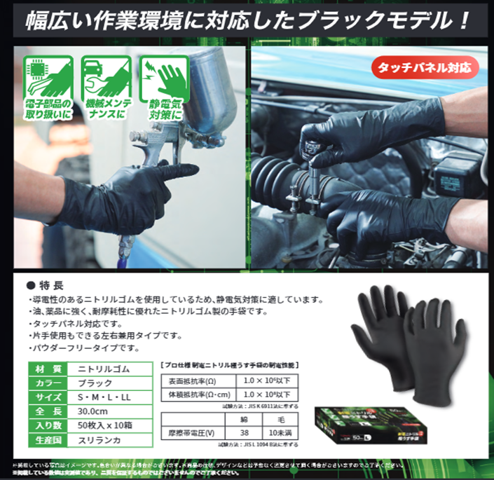 ミタニ プロダクターグローブ 50枚入 ニトリル薄手袋 整備 ガソリン 灯油 オイル 工場 メンテナンス シワ加工。